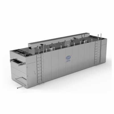 設(shè)備主要?于?制品、?制品等休閑?品,主要對產(chǎn)品進?烘?/烘烤、?冷(選配?藝段),烘?采?蒸汽換熱器進?換熱,烘烤采?遠(yuǎn)紅外線進?加熱,產(chǎn)品在烘?區(qū)域、烘烤區(qū)域進?往返連續(xù)式輸送,以達到所需要?藝時間,整體加熱過程為?動檢測溫度恒溫,?動檢測濕度排濕,內(nèi)部?能?動循環(huán),節(jié)約能耗,選配?藝段